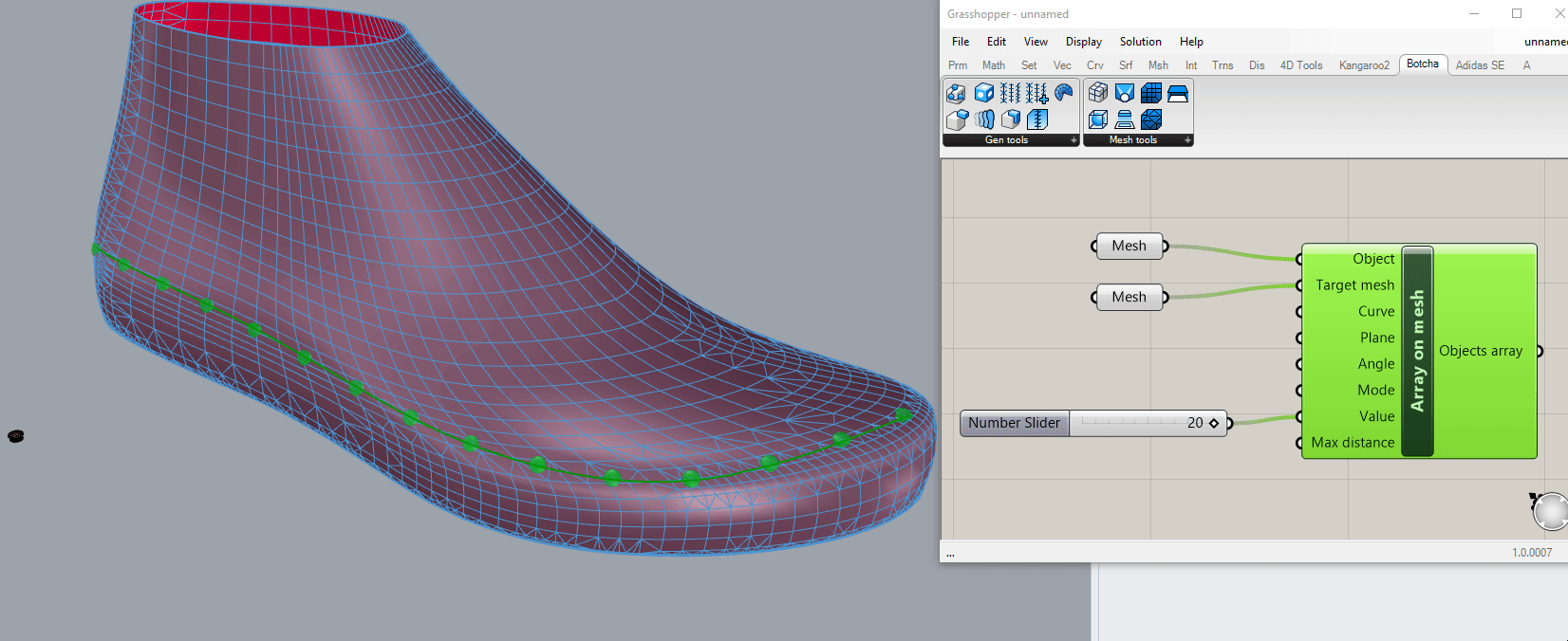 - Target mesh: The object the new copy will lay on. It also can be a mesh, subD, surface or brep.