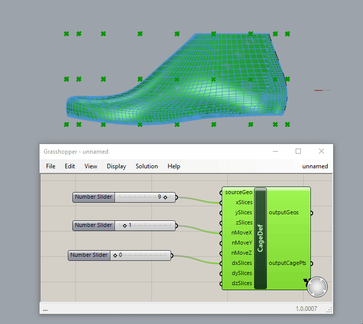 A last deformation moving cage points, which has been added to the Rhino document and then edited.