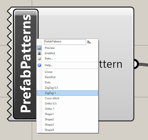 Choose from a set of ready-made stitching patterns from the list you can see after right-clicking on the node.