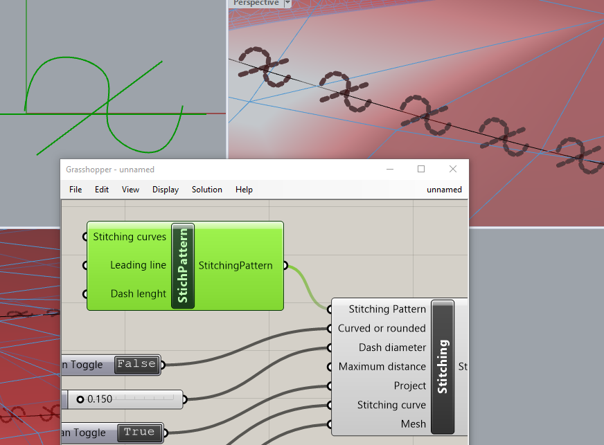 Stitching node creates a stitching along a chosen curve on a mesh.